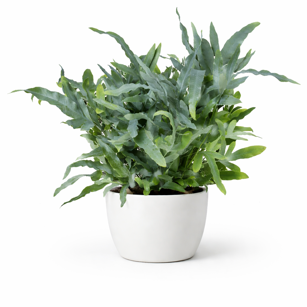 Le Phlébodium en touffe est une fougère grisâtre très résistante dans nos intérieur.